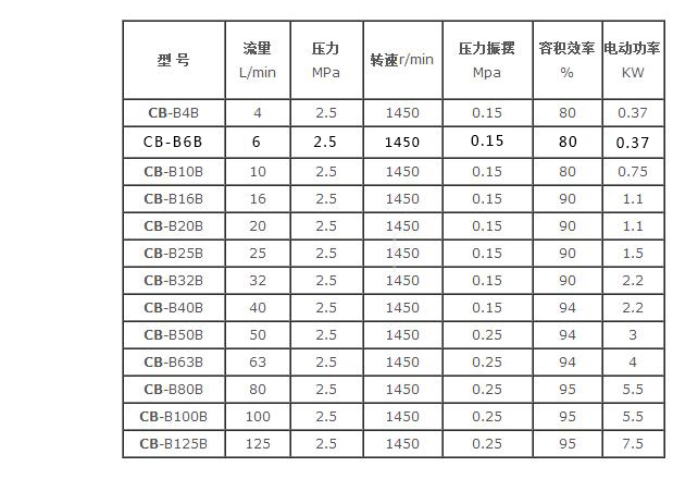 CB-B齒輪泵技術參數